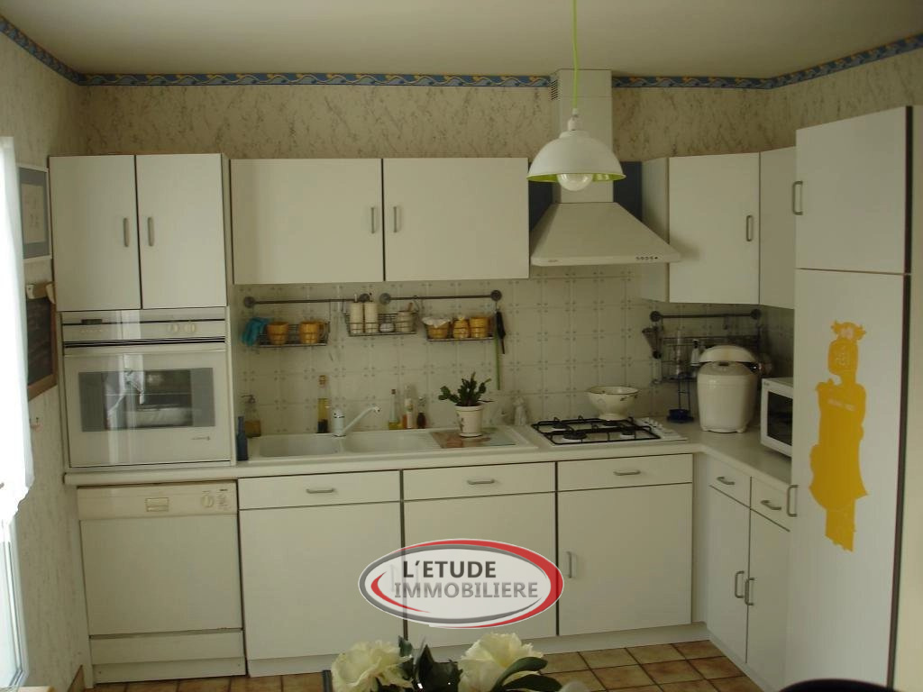 Sur un terrain clos et arboré de 227 m² : maison comprenant au rez-de-chaussée une entrée, une cuisine aménagée et équipée ouverte sur le salon séjour et un wc. A l'étage trois chambres avec placards, un bureau, une salle de bains et dégagement. Sous-sol complet, garage, cave. Combles aménageables.