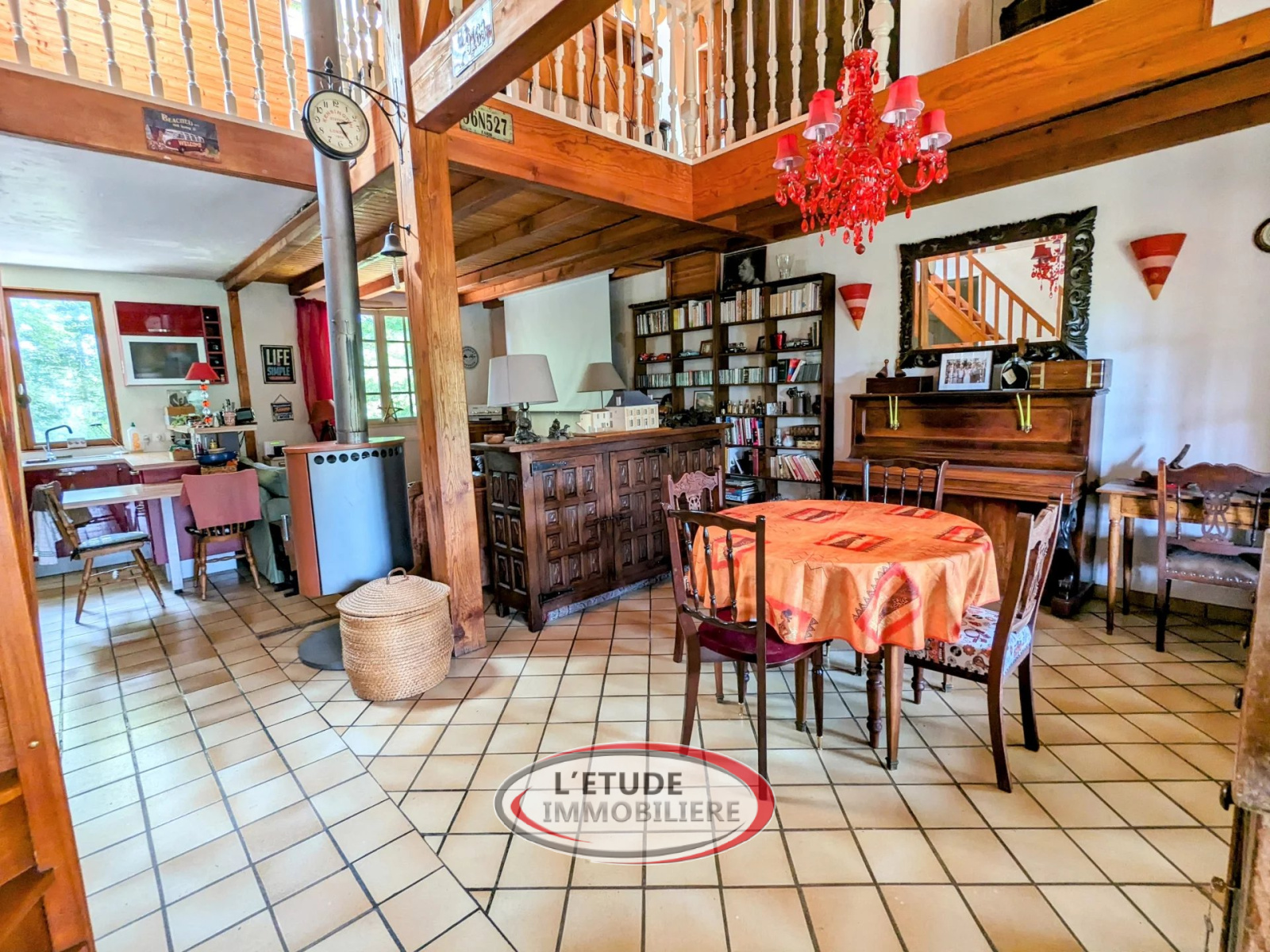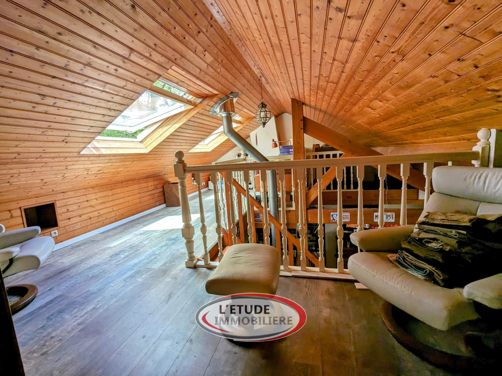 A l'étage, une grande mezzanine permet d'y installer un bureau et donne accès à une quatrième chambre.