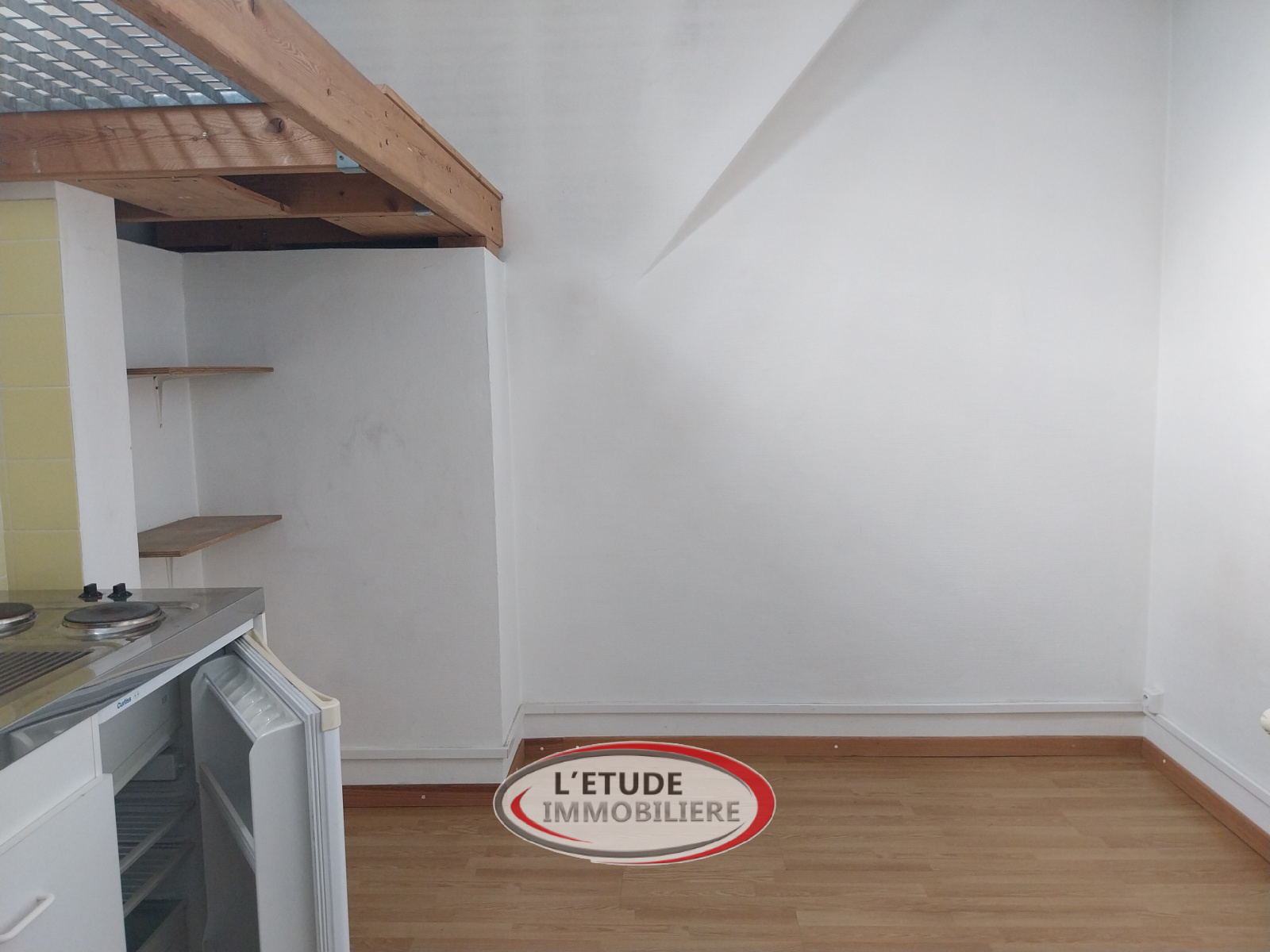 En grenier au dessus de ce type 3 se trouve un studio de 9 m² environ avec pièce de vie, coin cuisine, douche et WC. Celui-ci est accessible par l'entrée (escalier bois).